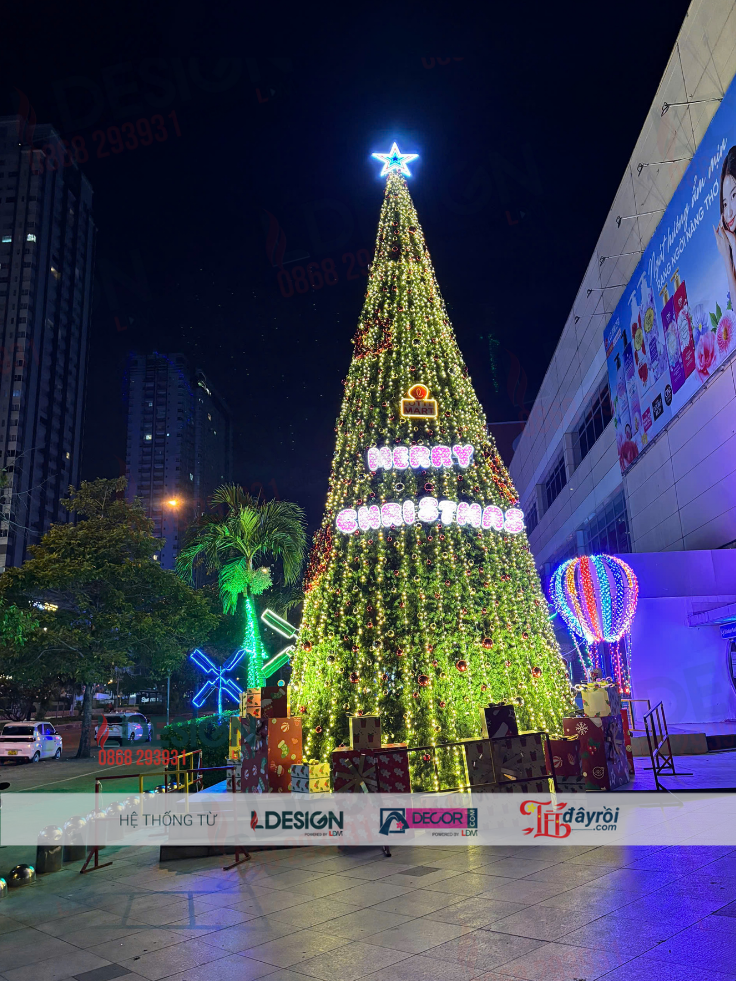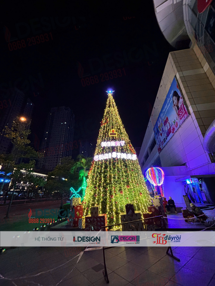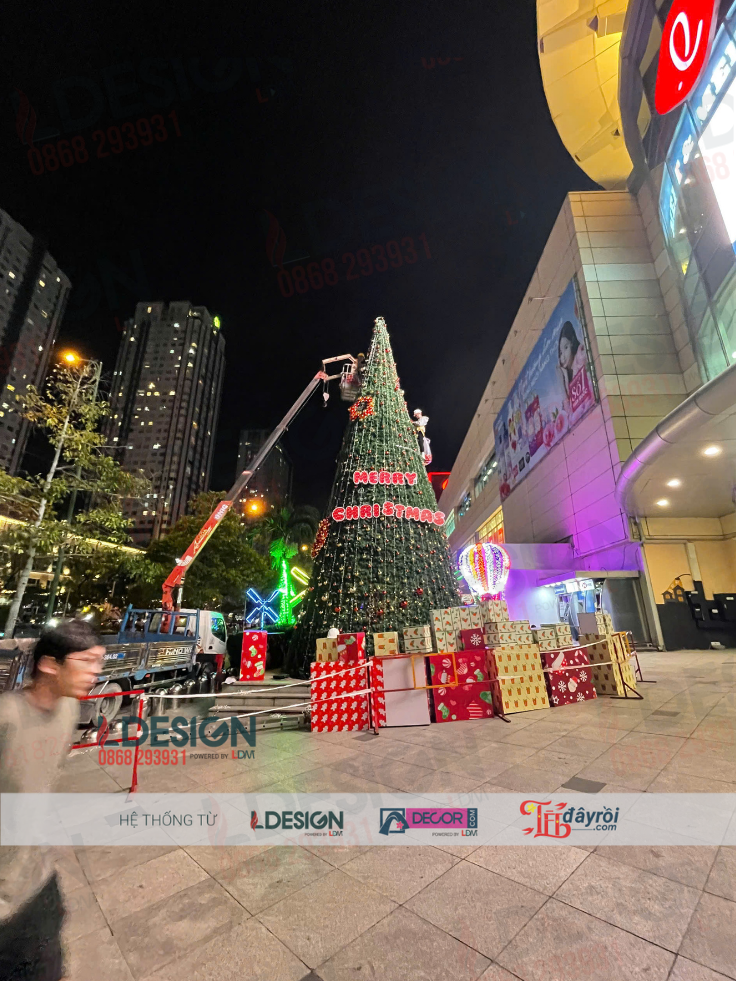 Với đặc thù không gian trung tâm thương mại đông người qua lại, cây thông Noel khổng lồ được thiết kế và thi công theo tiêu chuẩn cao về an toàn, thẩm mỹ và độ bền.