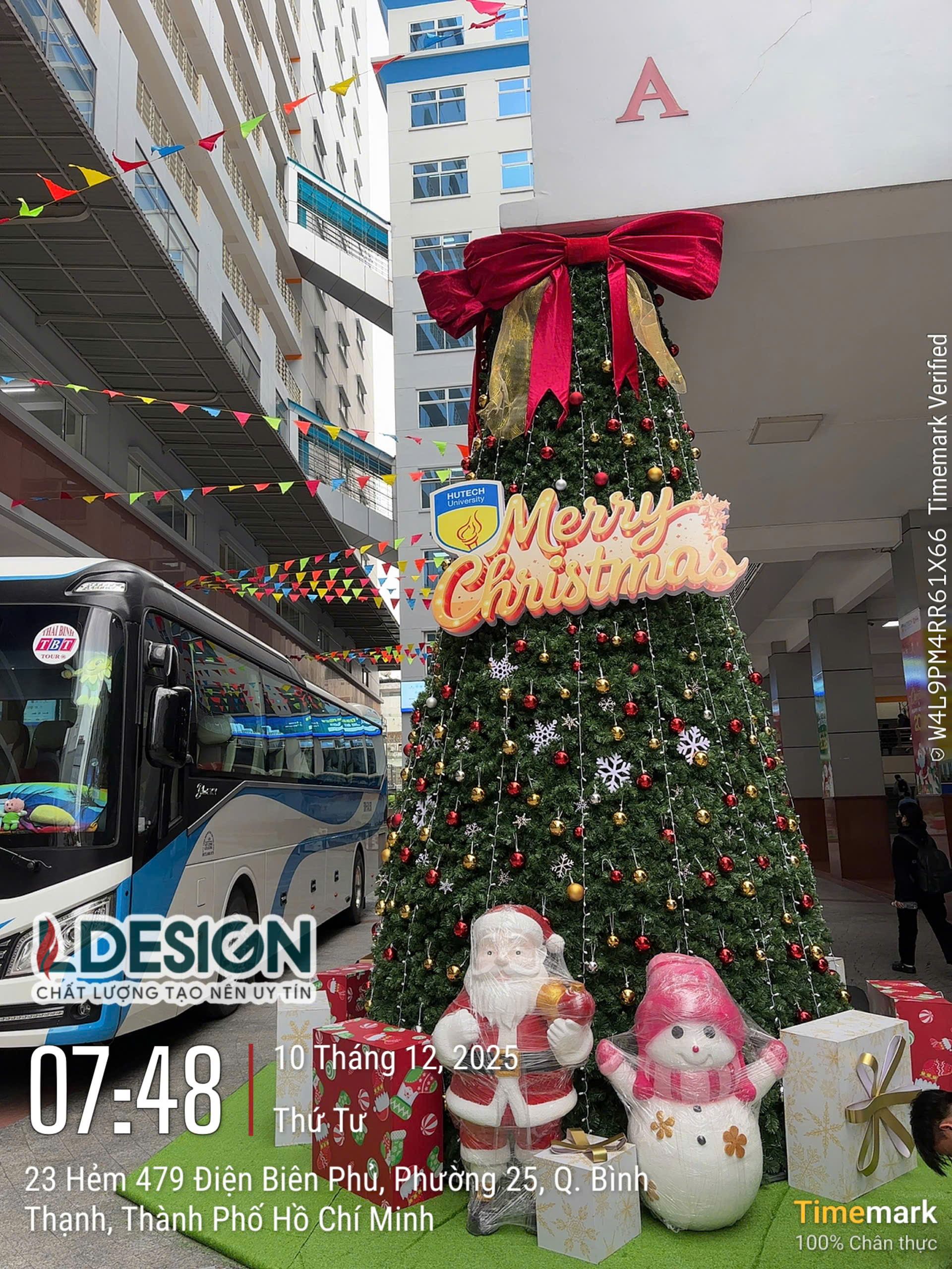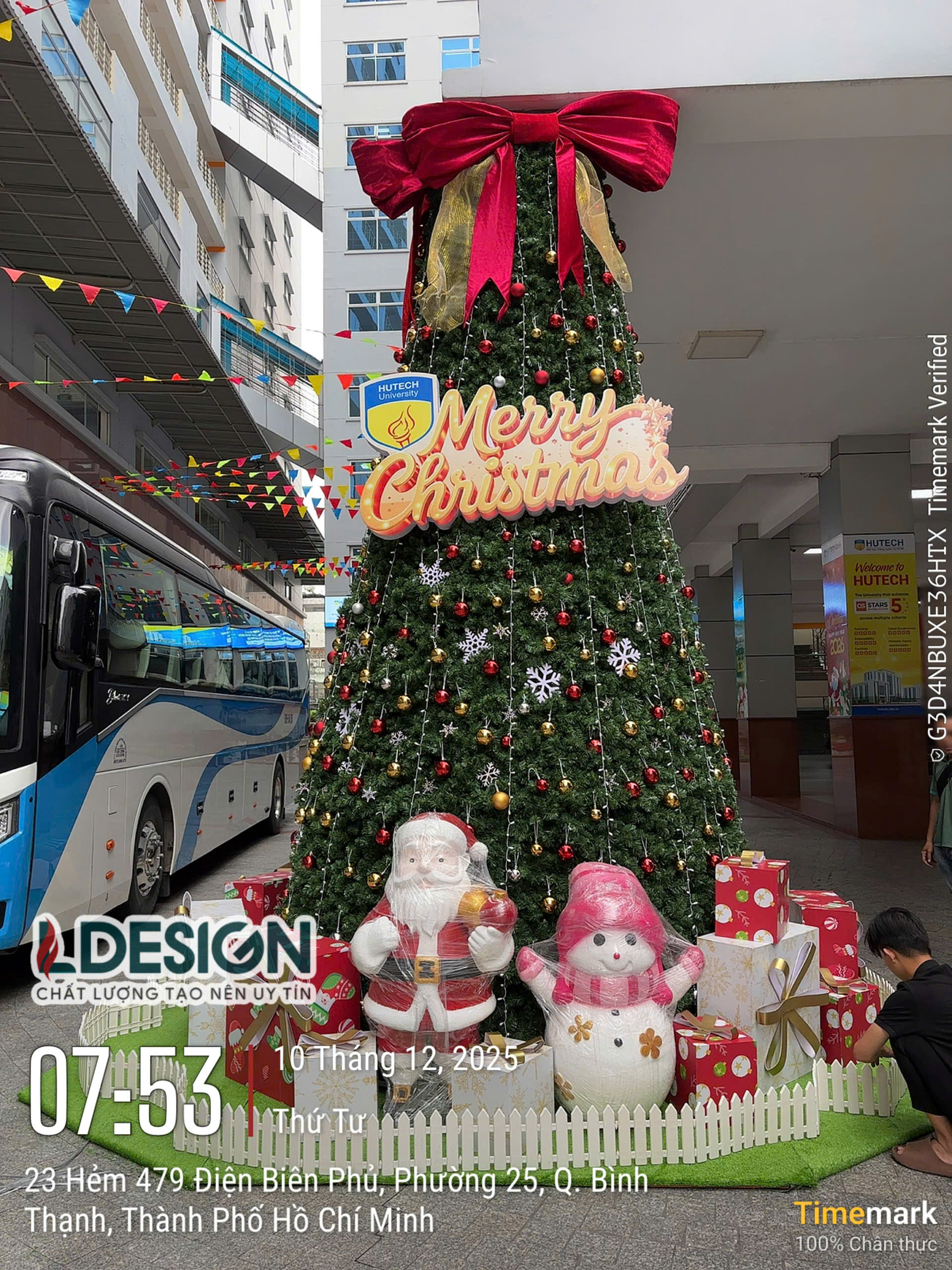 Mỗi mùa Giáng Sinh, không gian trang trí tại các trường đại học không chỉ mang ý nghĩa lễ hội mà còn tạo nên điểm nhấn sinh động, kết nối sinh viên và giảng viên trong không khí cuối năm. Năm nay, Trường Đại học HUTECH đã lựa chọn phương án trang trí cây thông Noel khổng lồ nhằm tạo nên một biểu tượng Giáng Sinh nổi bật trong khuôn viên trường. Chúng tôi tự hào là đơn vị thực hiện hạng mục thi công này, mang đến một không gian Noel ấn tượng, an toàn và đầy sức sống.